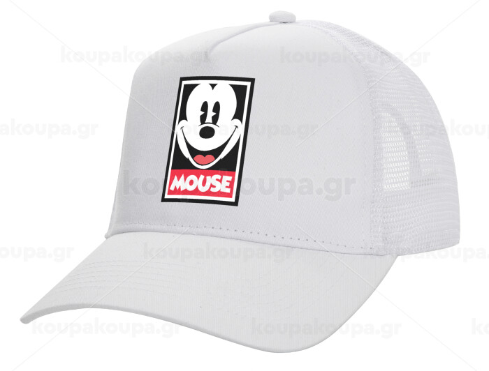 Mickey Mouse, Structured Trucker Adult Hat, with Mesh, WHITE (100% COTTON, ADULT, UNISEX, ONE SIZE)