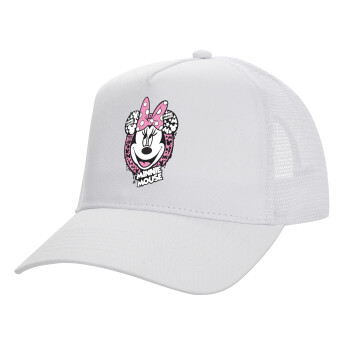 Minnie mouse, Structured Trucker Adult Hat, with Mesh, WHITE (100% COTTON, ADULT, UNISEX, ONE SIZE)