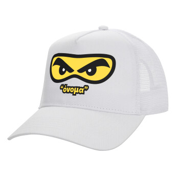 Ninja Eyes με όνομα, Structured Trucker Adult Hat, with Mesh, WHITE (100% COTTON, ADULT, UNISEX, ONE SIZE)