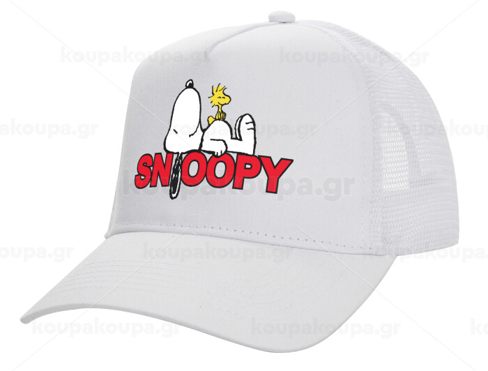 Snoopy sleep, Structured Trucker Adult Hat, with Mesh, WHITE (100% COTTON, ADULT, UNISEX, ONE SIZE)