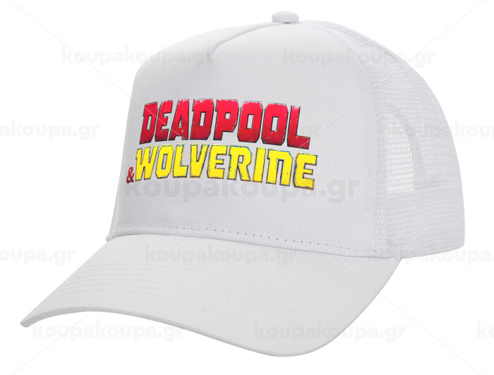 Superhero Deadpool Wolverine, Structured Trucker Adult Hat, with Mesh, WHITE (100% COTTON, ADULT, UNISEX, ONE SIZE)