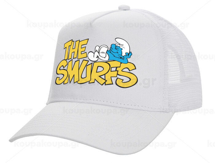 The smurfs, Structured Trucker Adult Hat, with Mesh, WHITE (100% COTTON, ADULT, UNISEX, ONE SIZE)