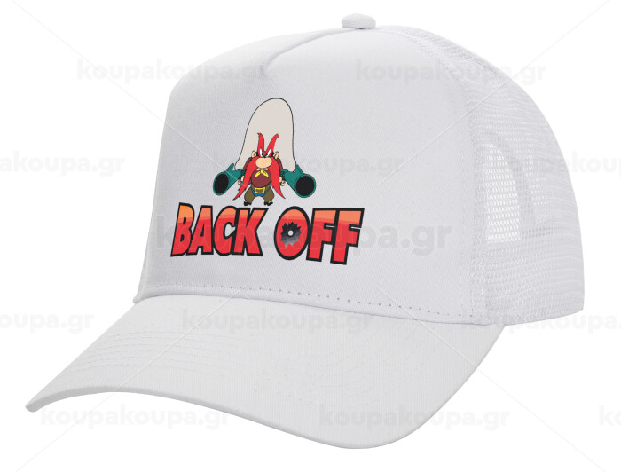 Yosemite Sam Back OFF, Structured Trucker Adult Hat, with Mesh, WHITE (100% COTTON, ADULT, UNISEX, ONE SIZE)