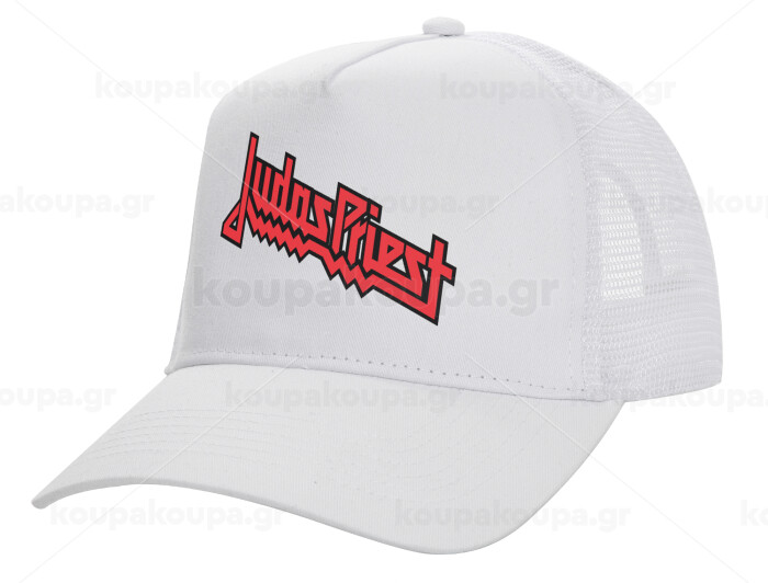 Judas Priest, Structured Trucker Adult Hat, with Mesh, WHITE (100% COTTON, ADULT, UNISEX, ONE SIZE)