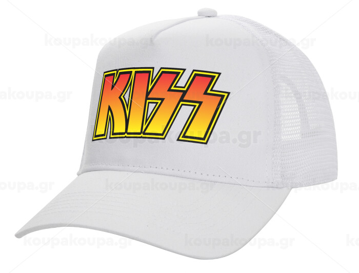 KISS, Structured Trucker Adult Hat, with Mesh, WHITE (100% COTTON, ADULT, UNISEX, ONE SIZE)