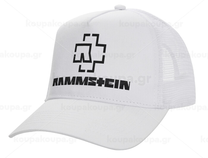 Rammstein, Structured Trucker Adult Hat, with Mesh, WHITE (100% COTTON, ADULT, UNISEX, ONE SIZE)