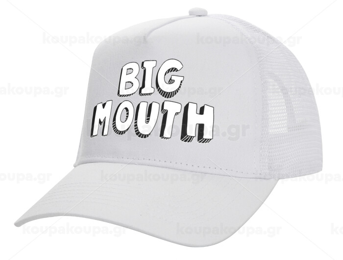 Big mouth, Structured Trucker Adult Hat, with Mesh, WHITE (100% COTTON, ADULT, UNISEX, ONE SIZE)