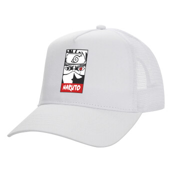 Naruto anime, Structured Trucker Adult Hat, with Mesh, WHITE (100% COTTON, ADULT, UNISEX, ONE SIZE)