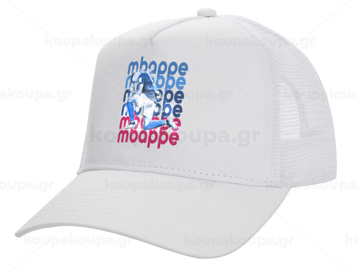 Kylian Mbappé, Structured Trucker Adult Hat, with Mesh, WHITE (100% COTTON, ADULT, UNISEX, ONE SIZE)