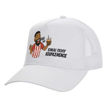 Ροντινέι, "ΠΟΛΥ ΚΟΥΡΑΣΜΕΝΟΣ", Structured Trucker Adult Hat, with Mesh, WHITE (100% COTTON, ADULT, UNISEX, ONE SIZE)