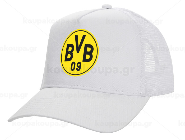 BVB Dortmund, Structured Trucker Adult Hat, with Mesh, WHITE (100% COTTON, ADULT, UNISEX, ONE SIZE)