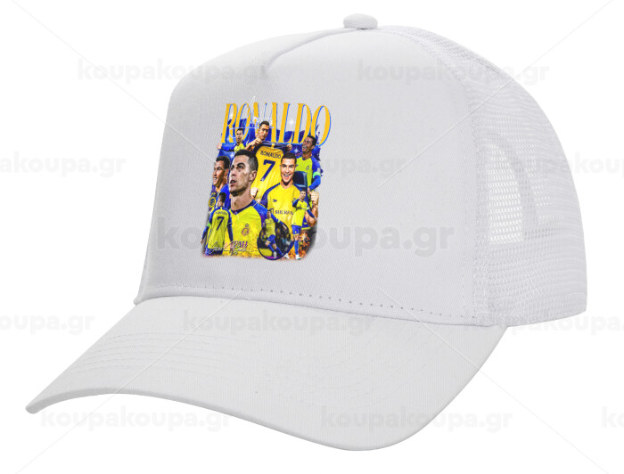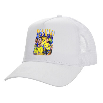 Cristiano Ronaldo Al Nassr, Structured Trucker Adult Hat, with Mesh, WHITE (100% COTTON, ADULT, UNISEX, ONE SIZE)