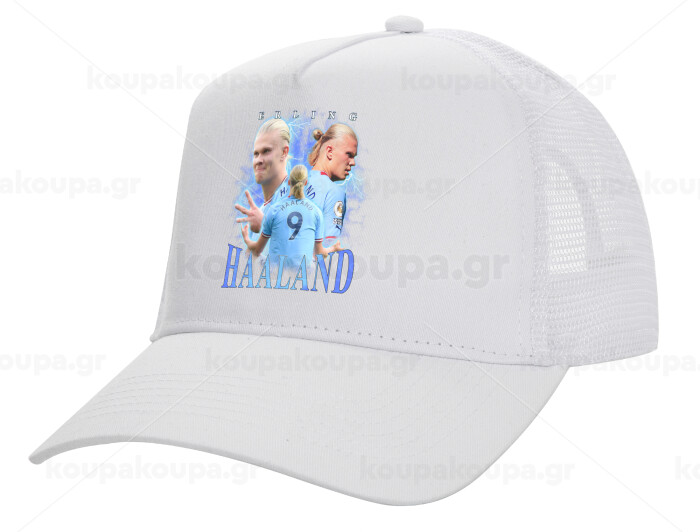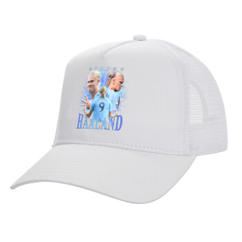 Erling Haaland, Structured Trucker Adult Hat, with Mesh, WHITE (100% COTTON, ADULT, UNISEX, ONE SIZE)