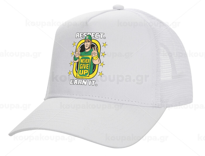 John Cena, Structured Trucker Adult Hat, with Mesh, WHITE (100% COTTON, ADULT, UNISEX, ONE SIZE)