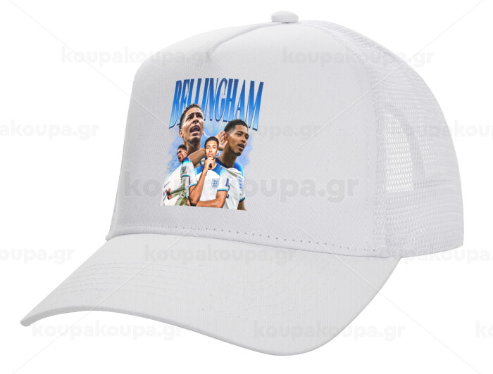 Jude Bellingham, Structured Trucker Adult Hat, with Mesh, WHITE (100% COTTON, ADULT, UNISEX, ONE SIZE)