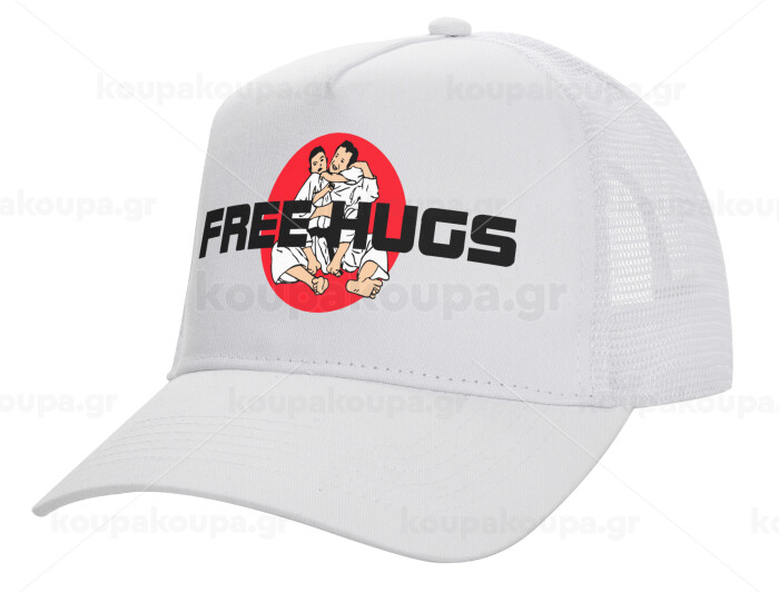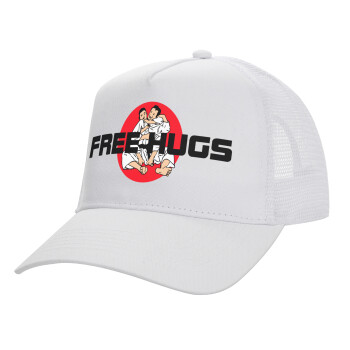JUDO free hugs, Structured Trucker Adult Hat, with Mesh, WHITE (100% COTTON, ADULT, UNISEX, ONE SIZE)