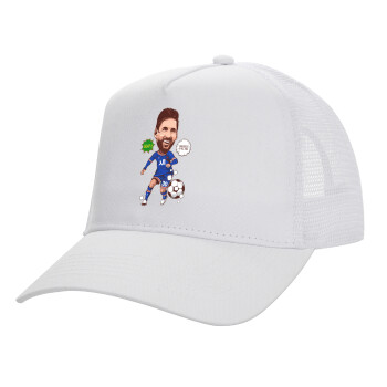 Lionel Messi drawing, Structured Trucker Adult Hat, with Mesh, WHITE (100% COTTON, ADULT, UNISEX, ONE SIZE)
