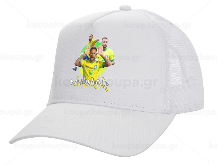Neymar JR, Structured Trucker Adult Hat, with Mesh, WHITE (100% COTTON, ADULT, UNISEX, ONE SIZE)