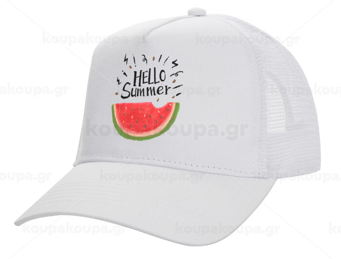 Summer Watermelon, Structured Trucker Adult Hat, with Mesh, WHITE (100% COTTON, ADULT, UNISEX, ONE SIZE)