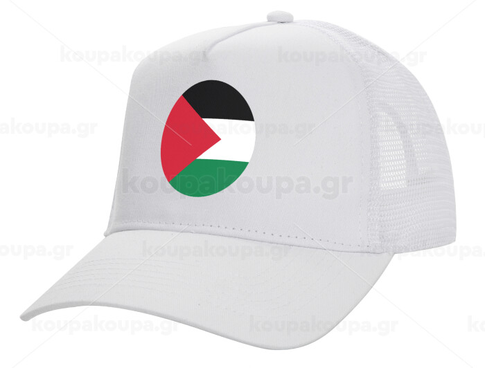 Palestine Flag, Structured Trucker Adult Hat, with Mesh, WHITE (100% COTTON, ADULT, UNISEX, ONE SIZE)