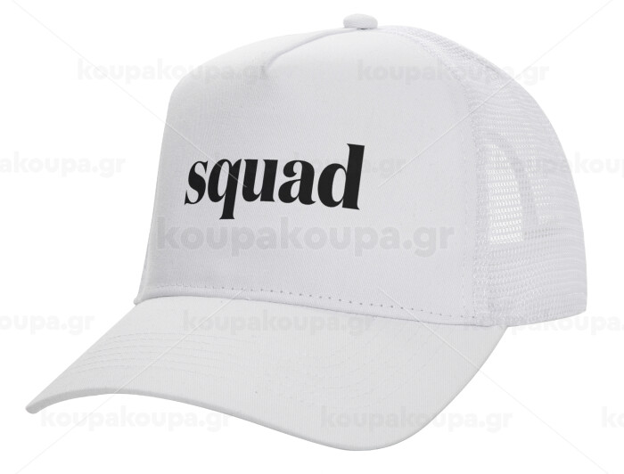 Squad display, Structured Trucker Adult Hat, with Mesh, WHITE (100% COTTON, ADULT, UNISEX, ONE SIZE)
