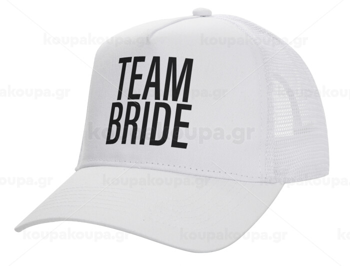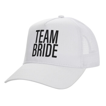 TEAM BRIDE, Structured Trucker Adult Hat, with Mesh, WHITE (100% COTTON, ADULT, UNISEX, ONE SIZE)