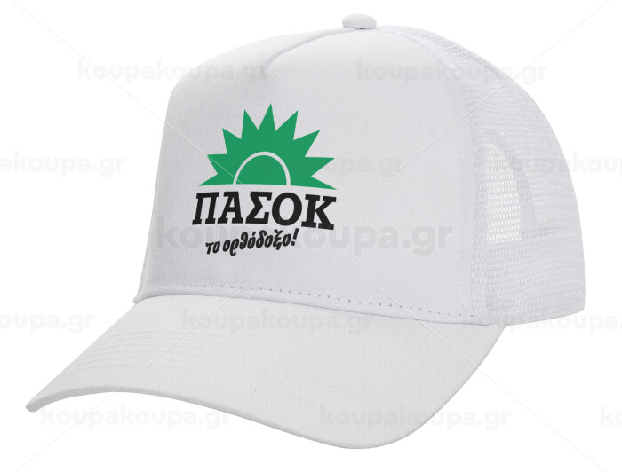 PASOK the orthodoxo, Structured Trucker Adult Hat, with Mesh, WHITE (100% COTTON, ADULT, UNISEX, ONE SIZE)