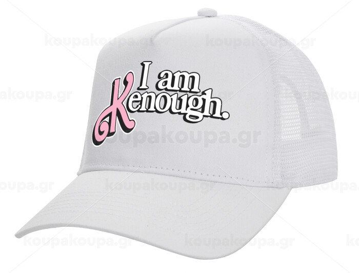Barbie, i am Kenough, Structured Trucker Adult Hat, with Mesh, WHITE (100% COTTON, ADULT, UNISEX, ONE SIZE)
