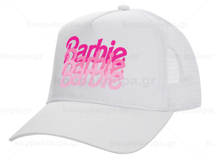 Barbie repeat, Structured Trucker Adult Hat, with Mesh, WHITE (100% COTTON, ADULT, UNISEX, ONE SIZE)