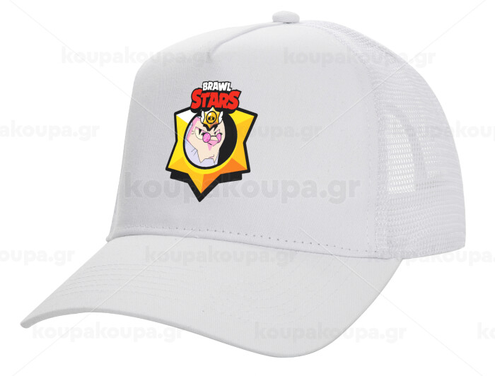 Brawl Stars Byron, Structured Trucker Adult Hat, with Mesh, WHITE (100% COTTON, ADULT, UNISEX, ONE SIZE)