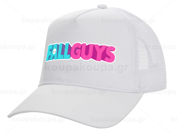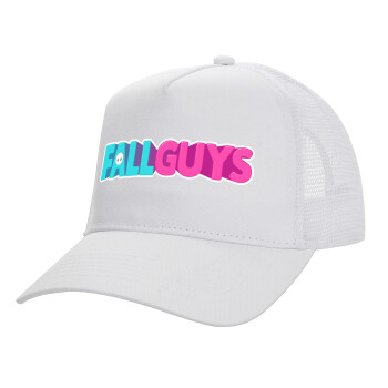 FALL GUYS, Structured Trucker Adult Hat, with Mesh, WHITE (100% COTTON, ADULT, UNISEX, ONE SIZE)