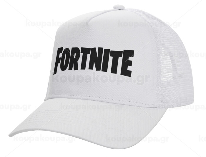 Fortnite landscape, Structured Trucker Adult Hat, with Mesh, WHITE (100% COTTON, ADULT, UNISEX, ONE SIZE)