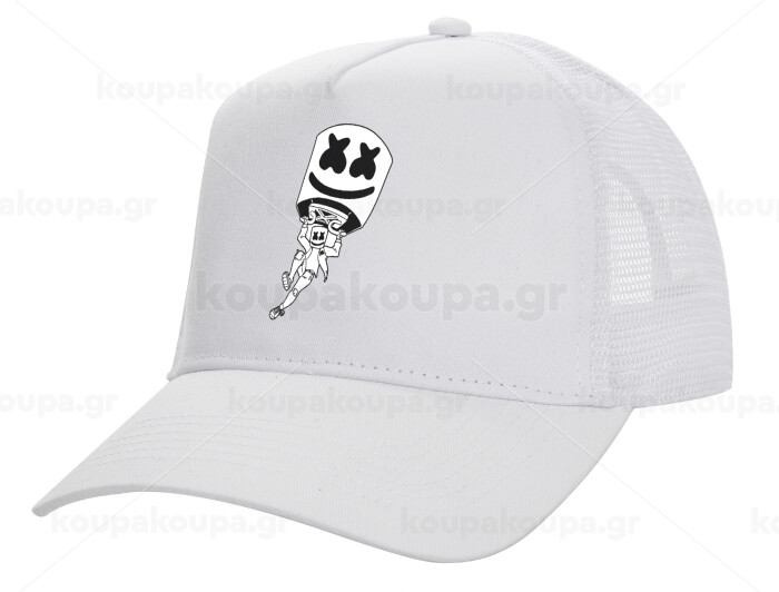 Fortnite Marshmello, Structured Trucker Adult Hat, with Mesh, WHITE (100% COTTON, ADULT, UNISEX, ONE SIZE)