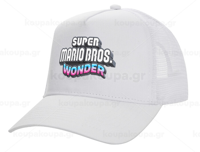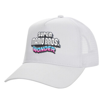 Super mario wonder, Structured Trucker Adult Hat, with Mesh, WHITE (100% COTTON, ADULT, UNISEX, ONE SIZE)