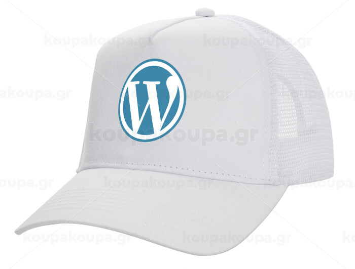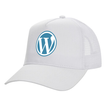 Wordpress, Structured Trucker Adult Hat, with Mesh, WHITE (100% COTTON, ADULT, UNISEX, ONE SIZE)