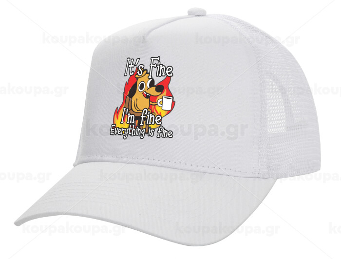 It's Fine I'm Fine Everything Is Fine, Structured Trucker Adult Hat, with Mesh, WHITE (100% COTTON, ADULT, UNISEX, ONE SIZE)
