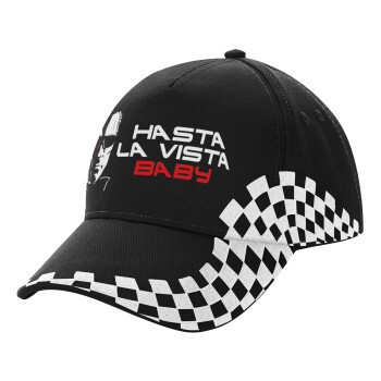Terminator Hasta La Vista, Adult Ultimate BLACK RACING Cap, (100% COTTON DRILL, ADULT, UNISEX, ONE SIZE)