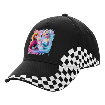 Elsa & Anna Princess, Adult Ultimate BLACK RACING Cap, (100% COTTON DRILL, ADULT, UNISEX, ONE SIZE)