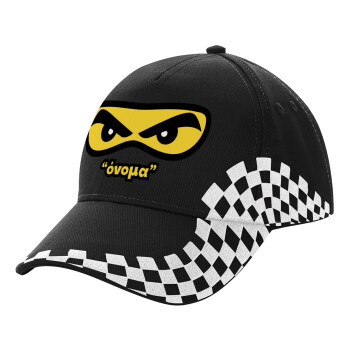 Ninja Eyes με όνομα, Adult Ultimate BLACK RACING Cap, (100% COTTON DRILL, ADULT, UNISEX, ONE SIZE)
