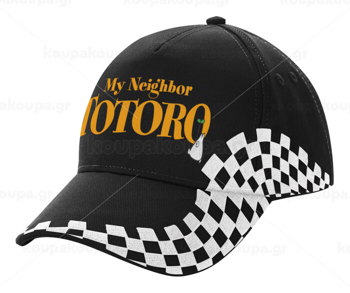 Totoro and Cat, Adult Ultimate BLACK RACING Cap, (100% COTTON DRILL, ADULT, UNISEX, ONE SIZE)