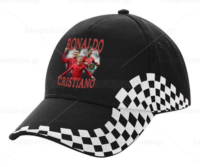 Cristiano Ronaldo, Adult Ultimate BLACK RACING Cap, (100% COTTON DRILL, ADULT, UNISEX, ONE SIZE)