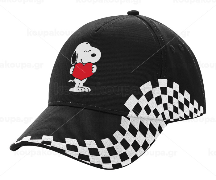 Snoopy takemy heart, Adult Ultimate BLACK RACING Cap, (100% COTTON DRILL, ADULT, UNISEX, ONE SIZE)