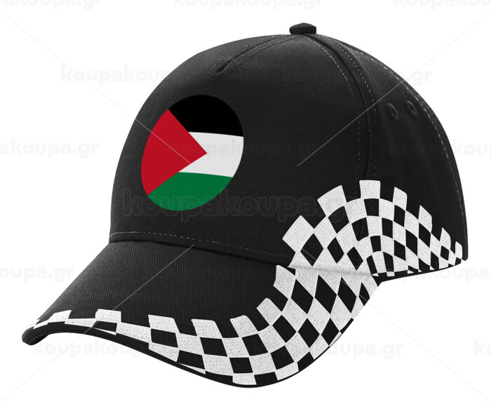 Palestine Flag, Adult Ultimate BLACK RACING Cap, (100% COTTON DRILL, ADULT, UNISEX, ONE SIZE)