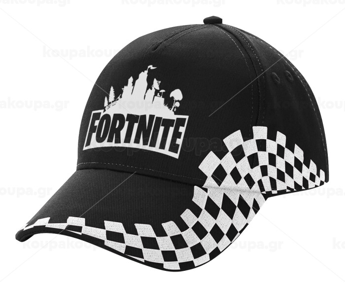 Fortnite, Adult Ultimate BLACK RACING Cap, (100% COTTON DRILL, ADULT, UNISEX, ONE SIZE)