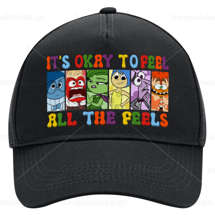 Inside Out It's Okay To Feel All The Feels , Adult Ultimate Hat BLACK, (100% COTTON DRILL, ADULT, UNISEX, ONE SIZE)