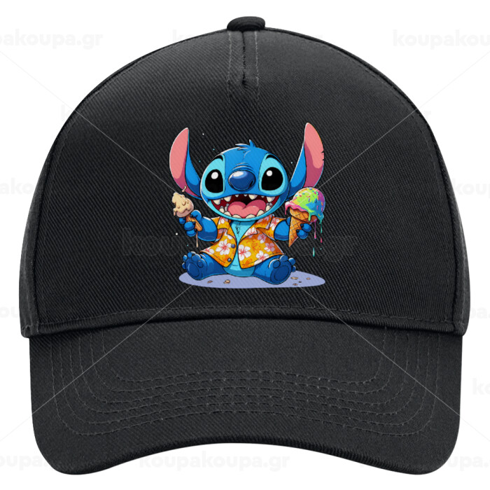Stitch Ice cream, Adult Ultimate Hat BLACK, (100% COTTON DRILL, ADULT, UNISEX, ONE SIZE)
