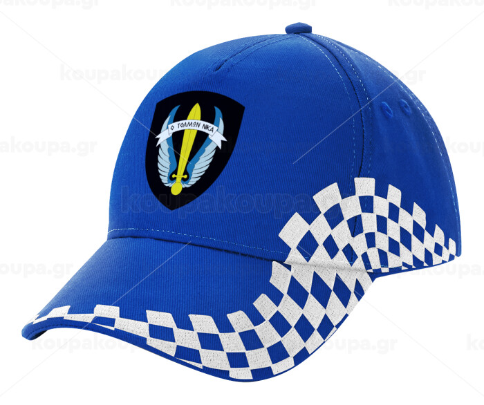 Έμβλημα Μονάδων Καταδρομών Ο Τολμων Νικα - Λοκ, Adult Ultimate BLUE RACING Cap, (100% COTTON DRILL, ADULT, UNISEX, ONE SIZE)