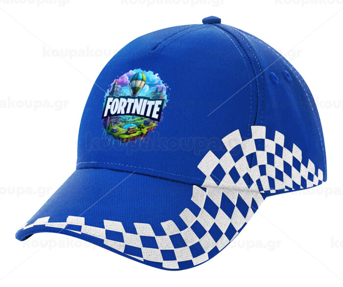 Fortnite land, Adult Ultimate BLUE RACING Cap, (100% COTTON DRILL, ADULT, UNISEX, ONE SIZE)