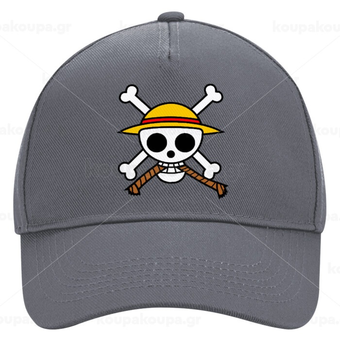 Onepiece skull, Ultimate Adult Hat Grey, (100% COTTON DRILL, ADULT, UNISEX, ONE SIZE)