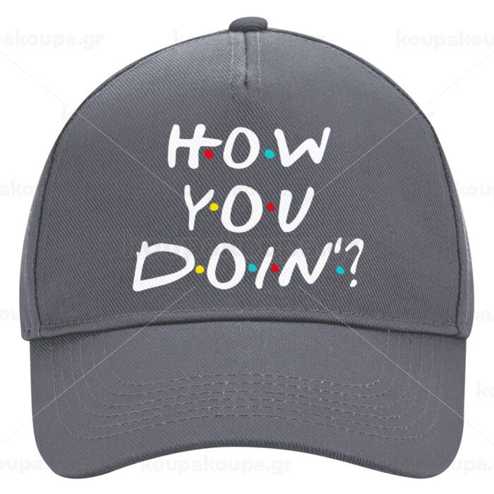 Friends How You Doin'?, Ultimate Adult Hat Grey, (100% COTTON DRILL, ADULT, UNISEX, ONE SIZE)